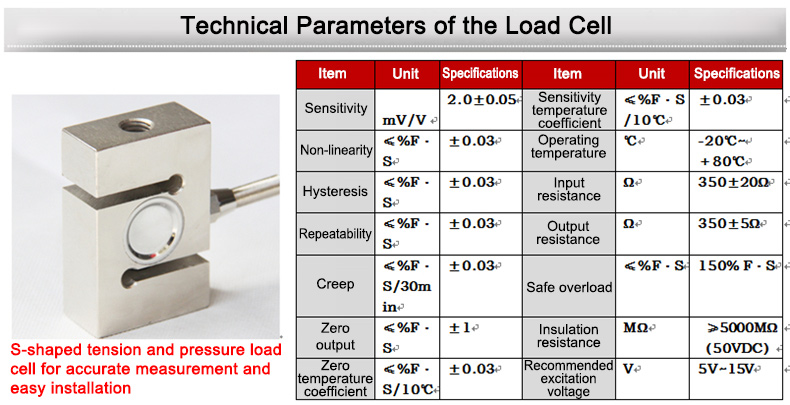 * Integrated Tension and Compression Use: The S-shaped tension and compression load cell offers accurate measurement and easy installation.