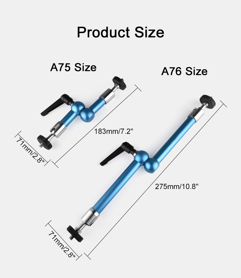 - Compatible with 1/4 screws at both ends, the magic arm can be connected to HD monitors, tripods, camera cages, etc.
