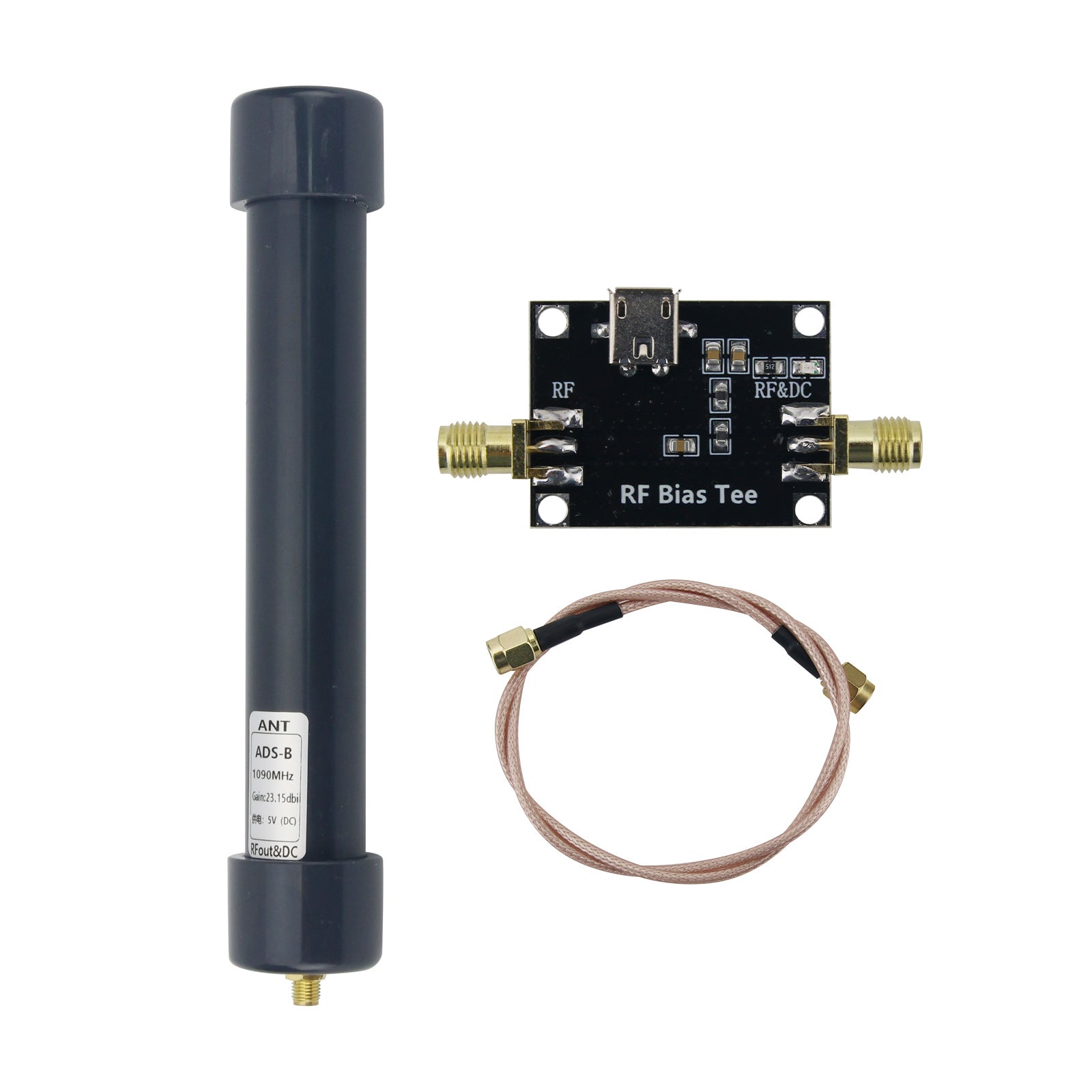 ADS-B 1090MHz Active Antenna DC5V Bias Tee USB Power Supply 23.15dBi High Gain RF Receiving Antenna with SMA Female Connector