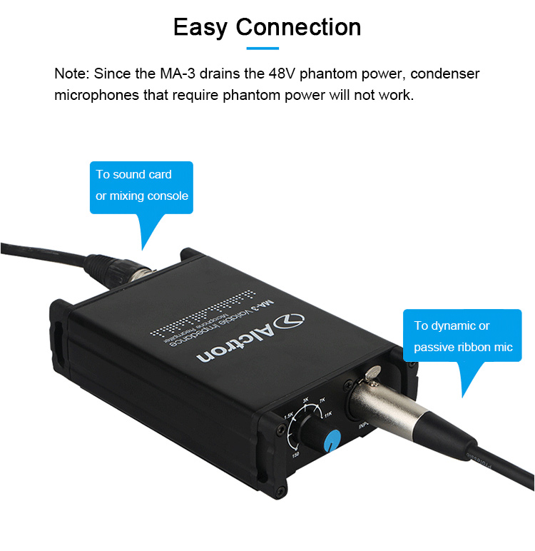 Alctron MA-3 Variable Impedance Microphone Preamplifier Mic Preamp for Dynamic & Passive Ribbon Mics
