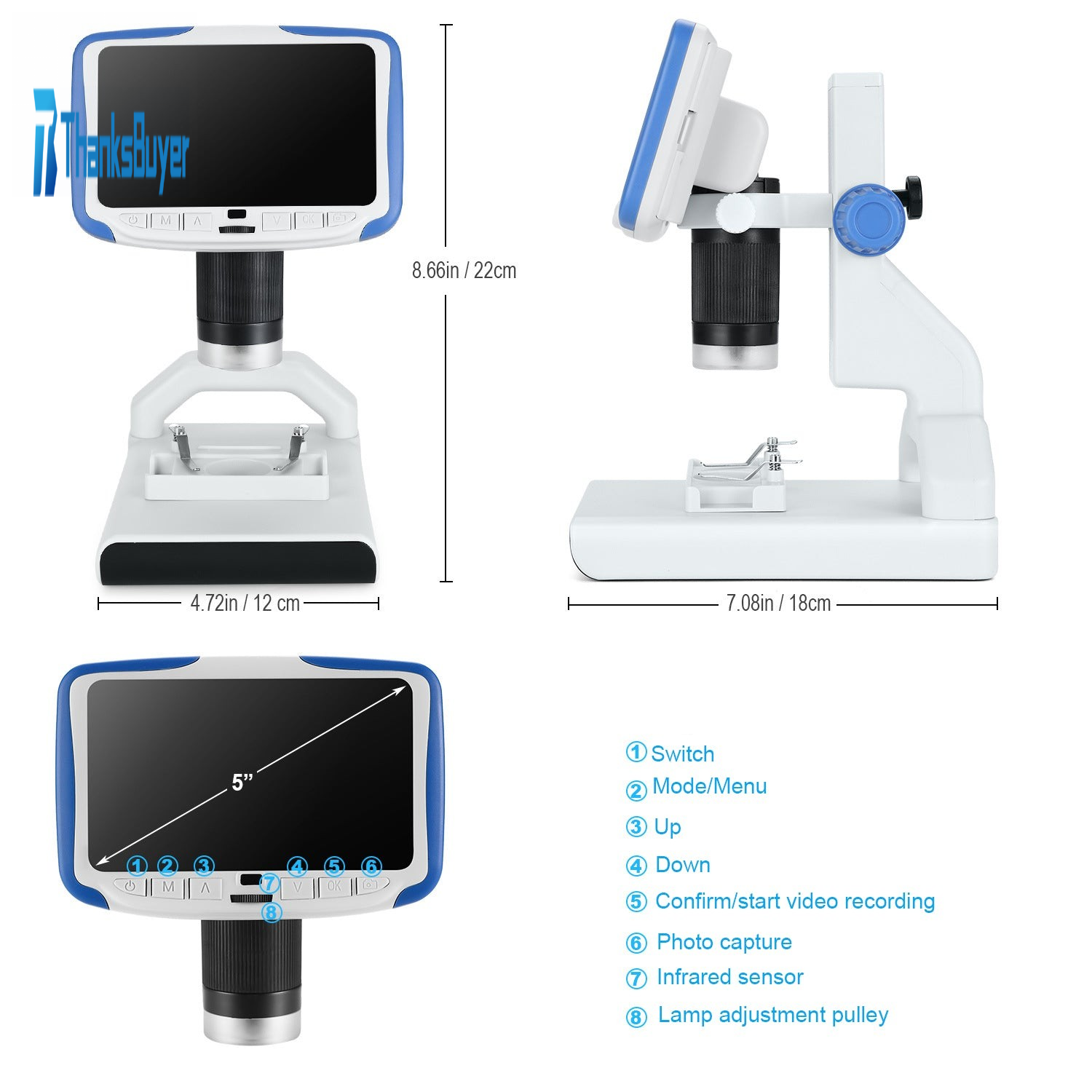 - Screen: 5-inch LCD