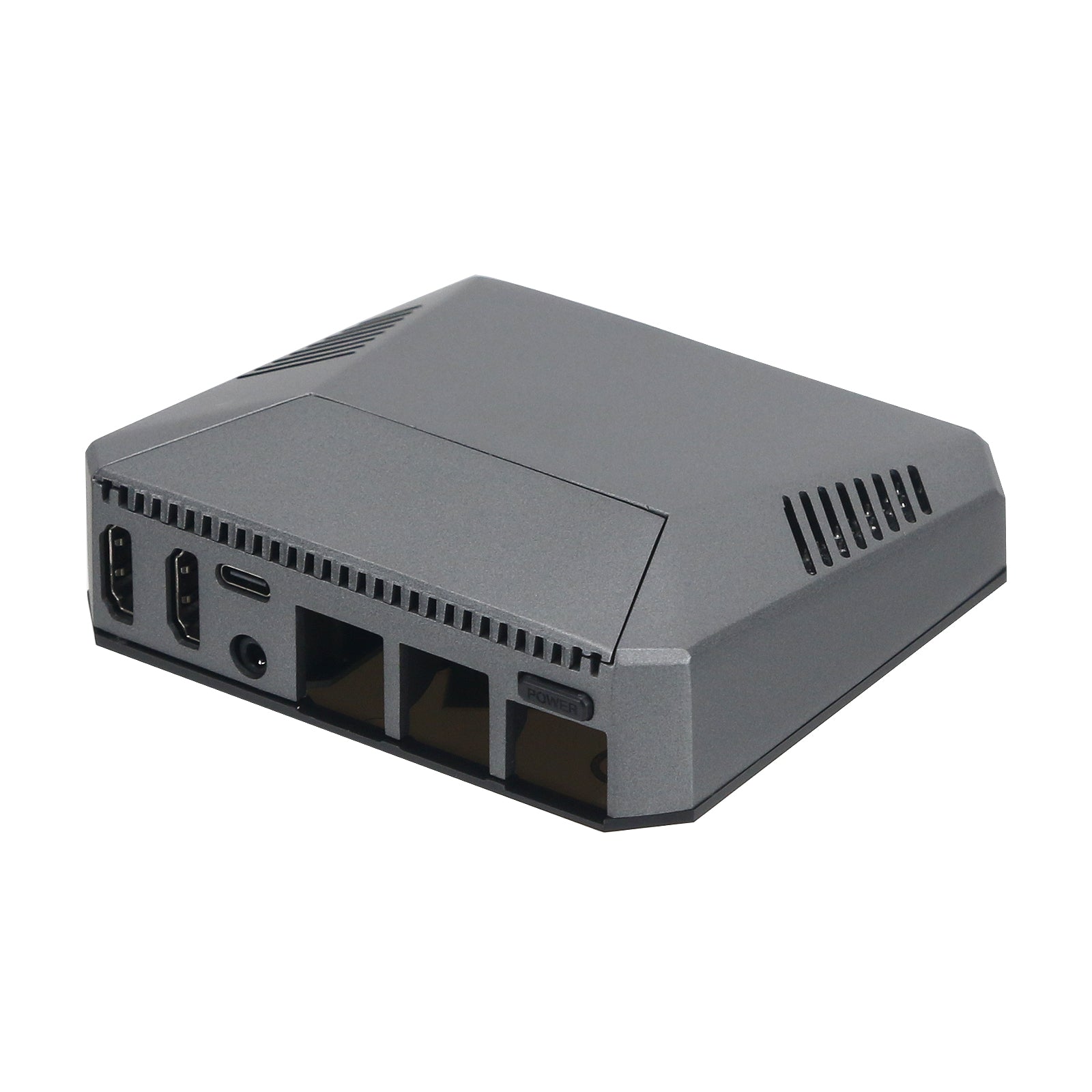 - This is all the while still maintaining the case's form factor, as well as its ability to keep all ports, including the two full-sized HDMIs, at the back of the case. Even the GPIO pins are accessible at the top of the case and covered with a lid when not in use.