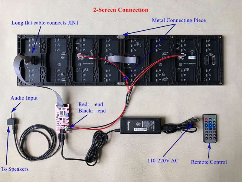 2. The product has passed the test before shipment. In order to facilitate packaging, we will remove cables when shipping. After you receive the goods, please connect them according to the picture. We will provide metal connecting pieces if you purchase multiple screens.