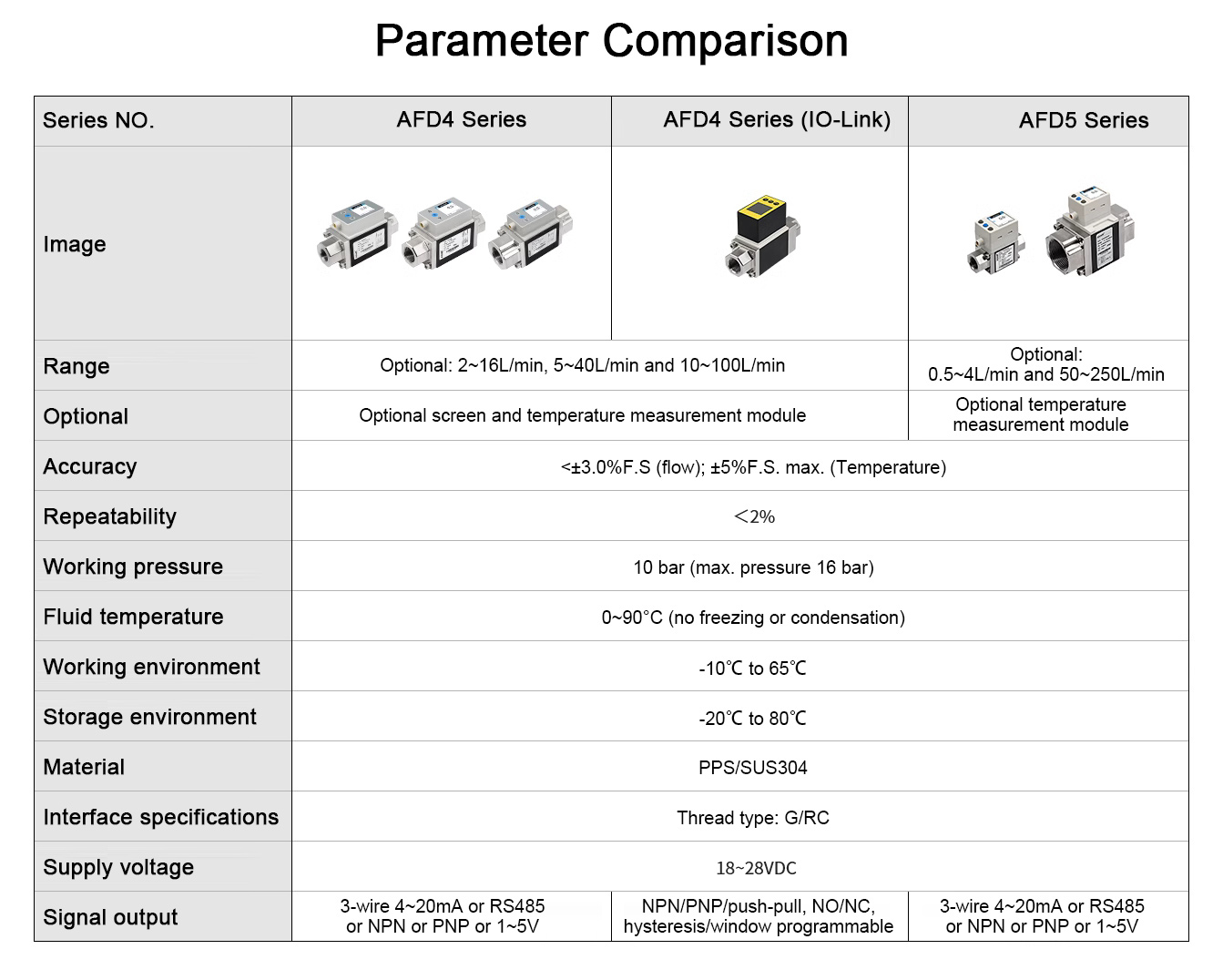 - The AFD4/AFD5 series flow sensor is a commonly used measuring instrument. Its housing is robust and compact. It can provide solutions for multiple application scenarios such as harsh industrial production environment, energy metering, environmental protection, laboratory environment and transportation.