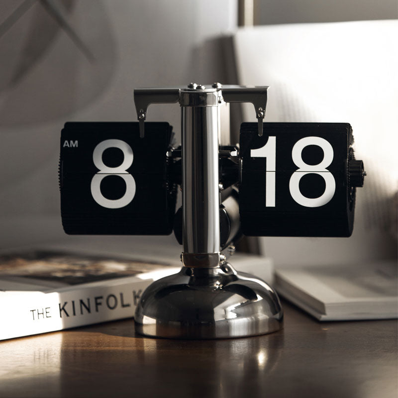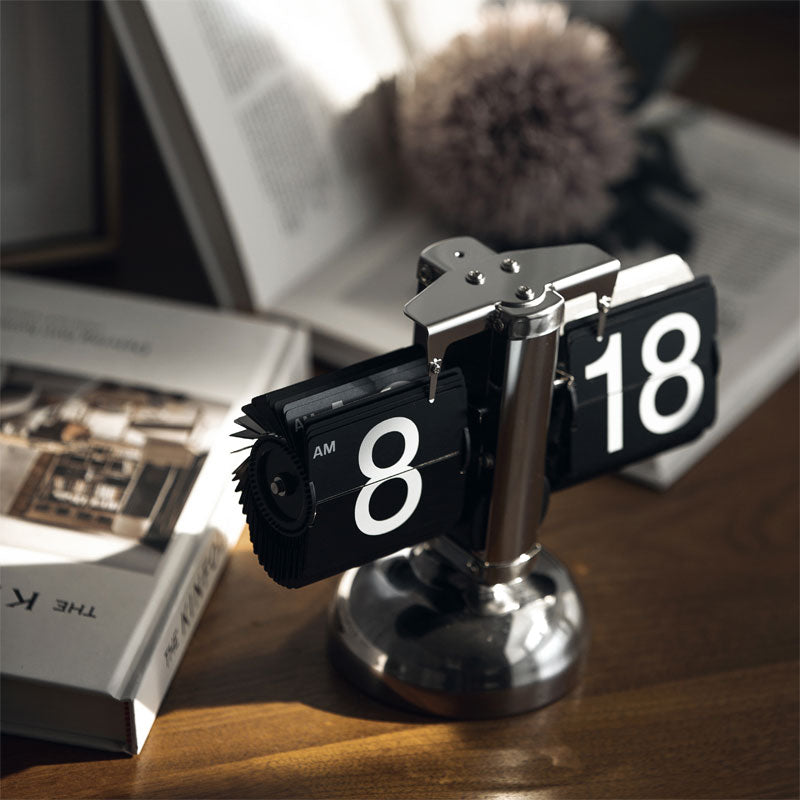 Automatic Flip Clock Desktop Clock Digital Clock Home European Style Decoration Black Number Card