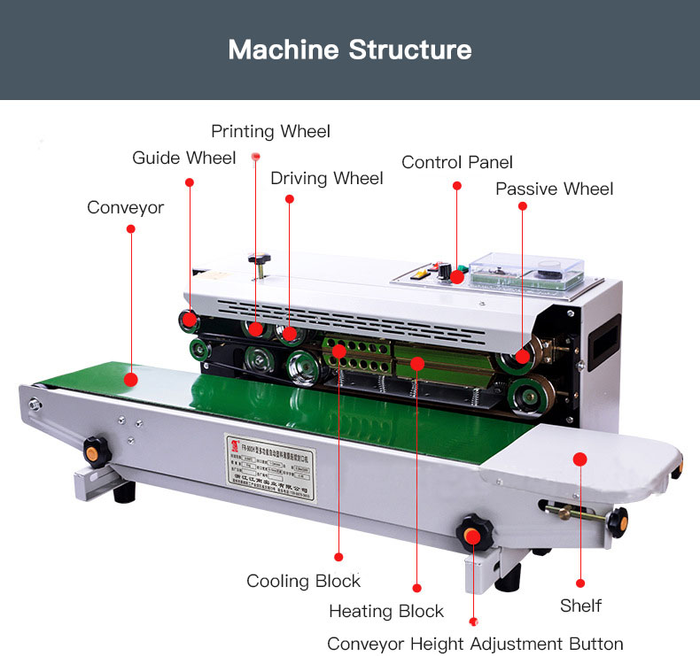 - Adjusted Pressure of Printing Wheel: Users can rotate the knob to adjust printing pressure to seal different sealing materials.