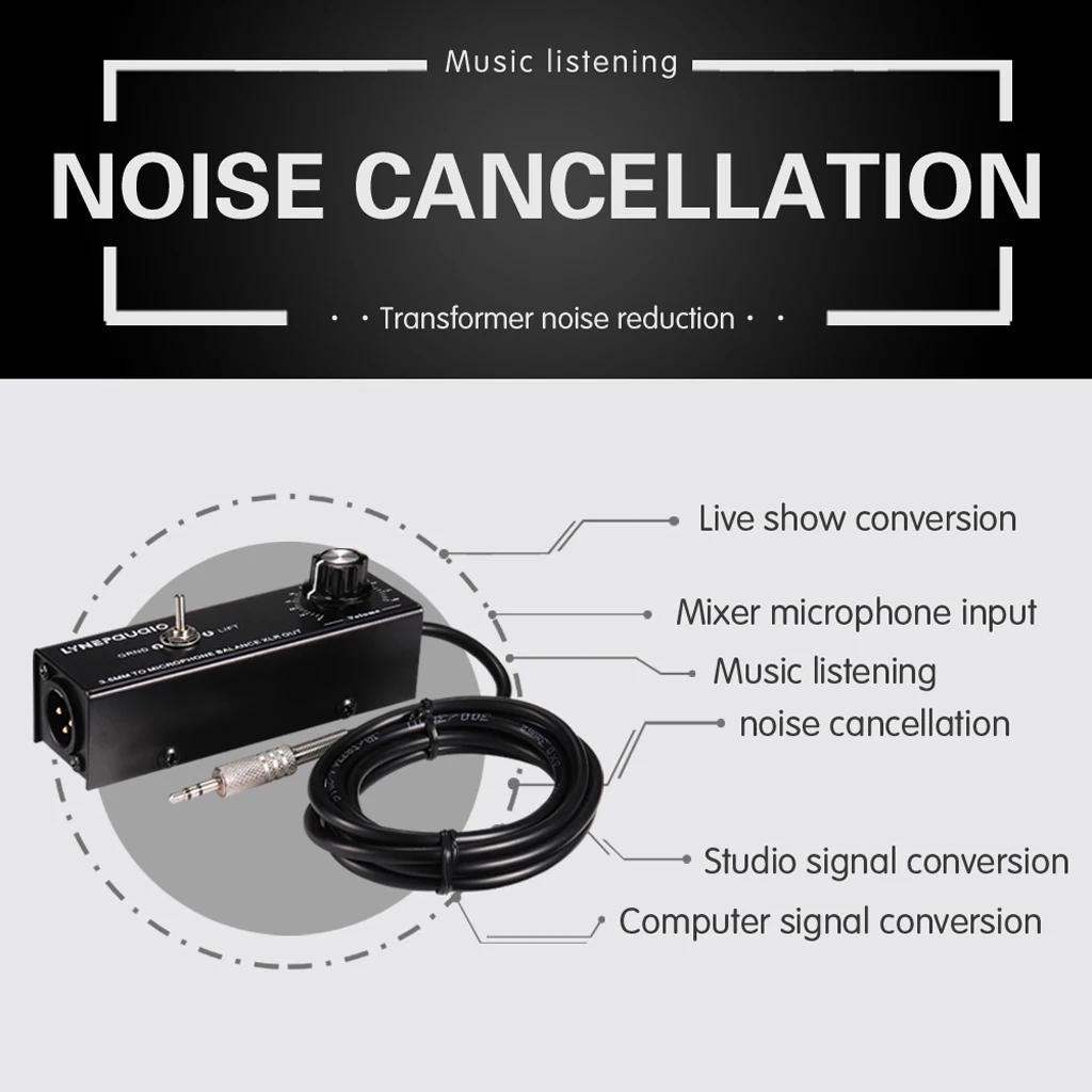 - The professional 3.5mm interface stereo signal is converted into a microphone-level balanced signal XLR interface.