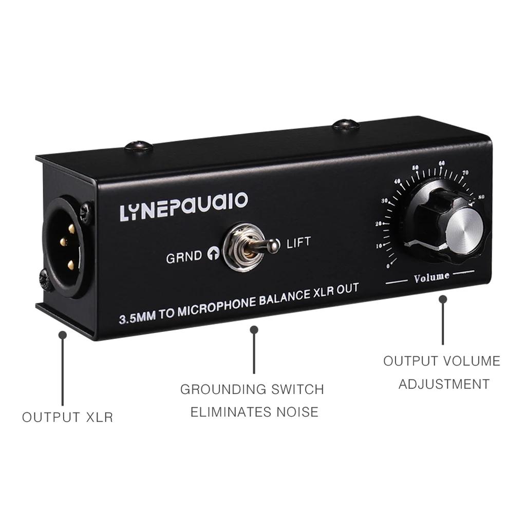 - The product converts line level signals from audio equipment (laptops/MP3 players/CD players/mobile phones/tablets) into a microphone-level balanced signal output after the sum of the left and right channels.