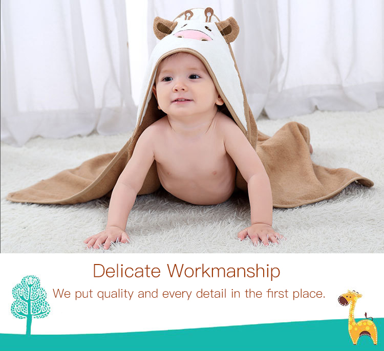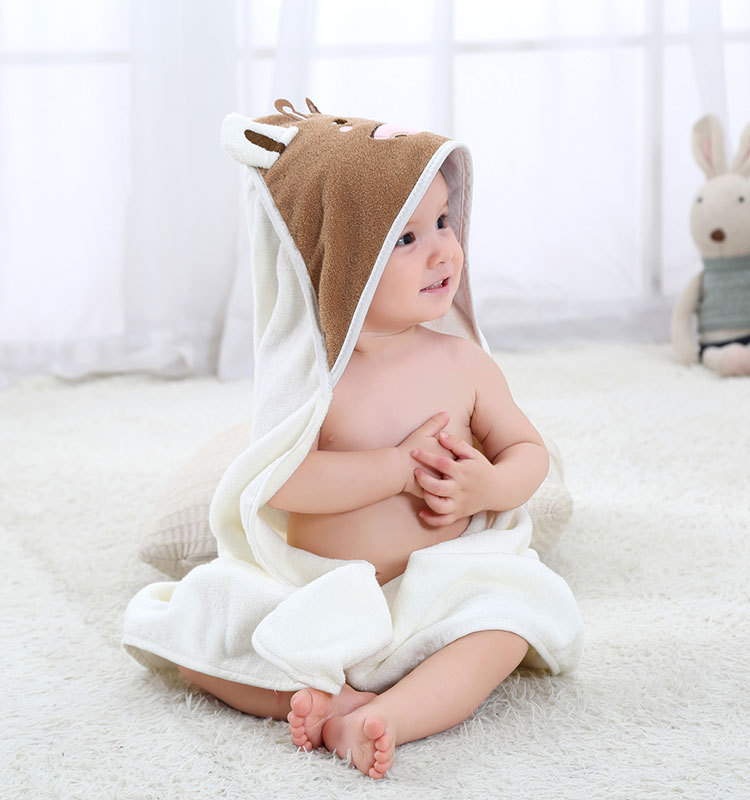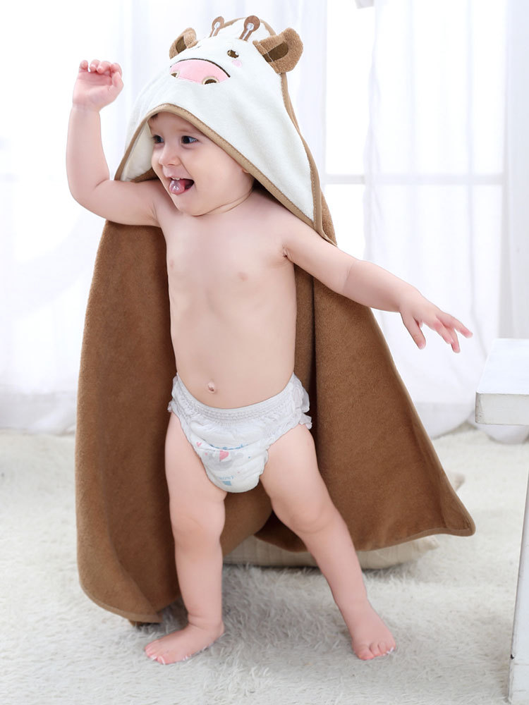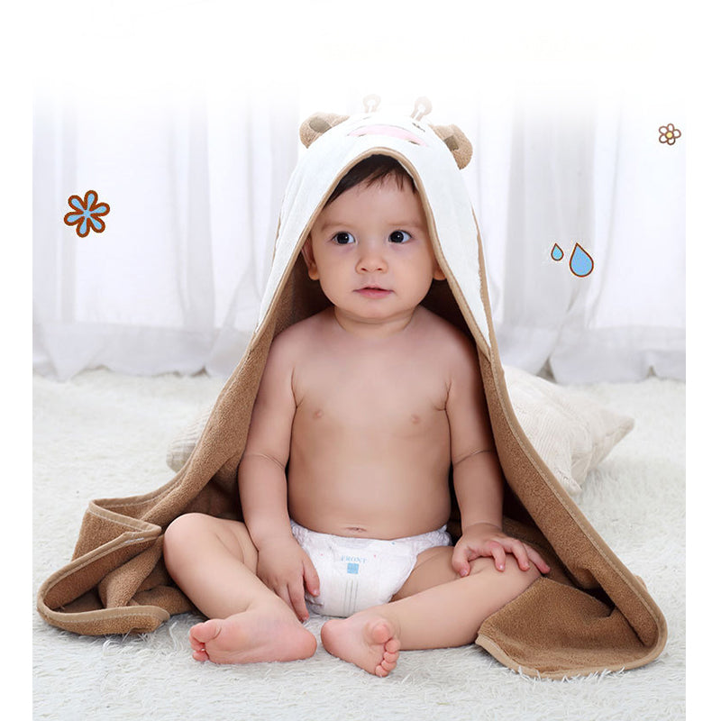 Baby Hooded Bath Towel Cotton Baby Hooded Towel Cape Towel Soft Cartoon Wrap Blanket 90x90cm
