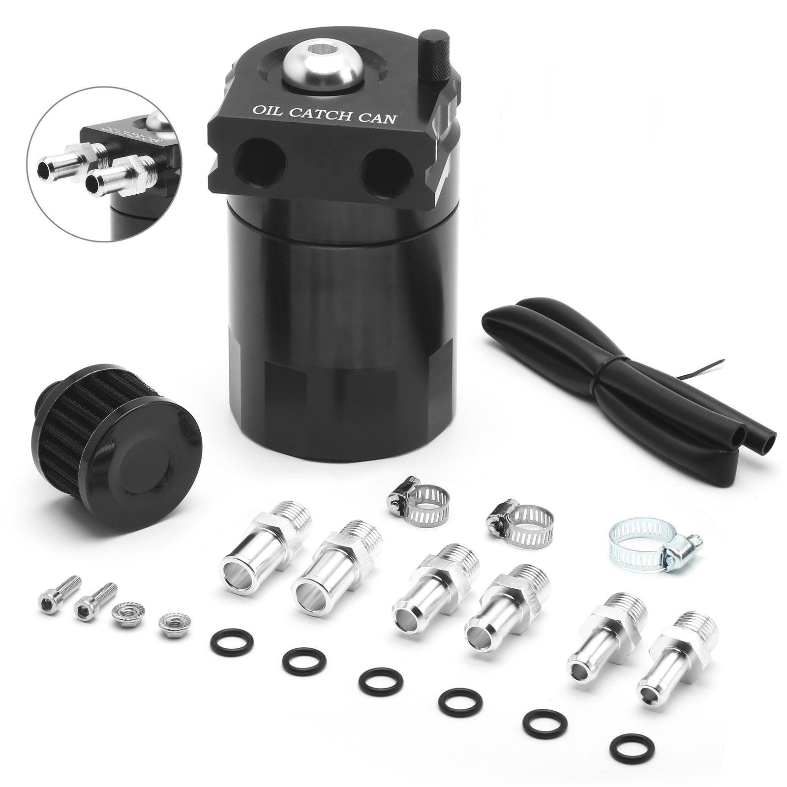 Baffled Oil Catch Can Reservoir Tank Kit 240ml With Breather Filter Engine Air Oil Separator Dual Cylinder-Black