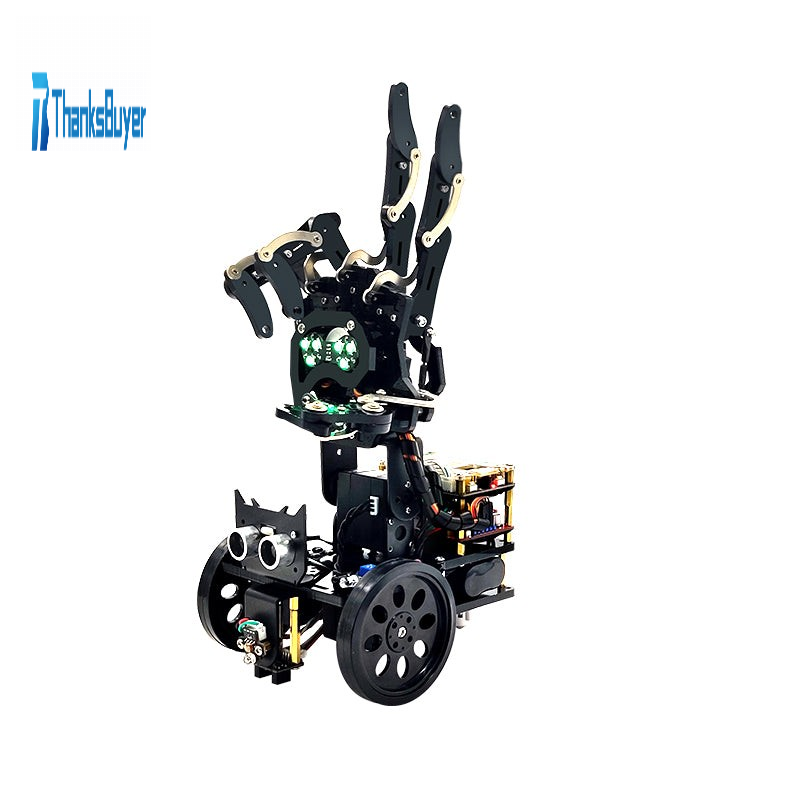 The Gihand2 programming robot has finger sensing and posture sensing functions. It can control the front, rear, left, and right of the car. Equipped with MP3, infrared, sound, sensors, grayscale, loop, and RGB color light modules, it can realize voice broadcast, infrared automatic presentation, voice control rock-paper-scissors, ranging, smart loop, etc. ways to play.