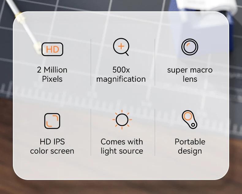 Black 500X Magnification Portable Handheld Digital Microscope Super Macro Lens with 2-inch IPS Screen