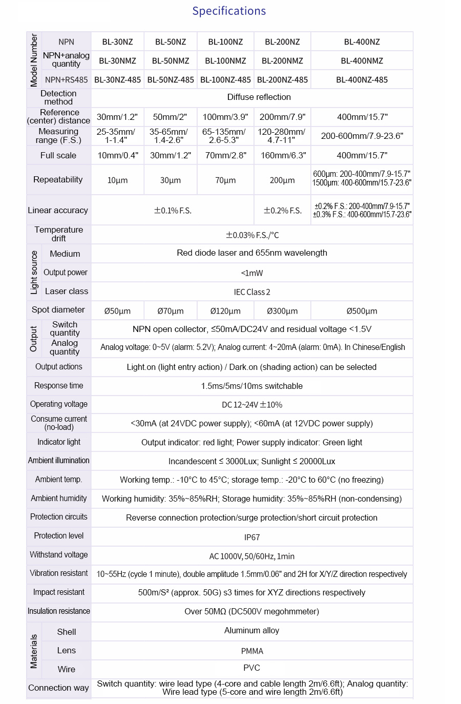 BOJKE BL-400NZ-485 Laser Displacement Sensor Supports Switch Quantity Output and RS485 Communication