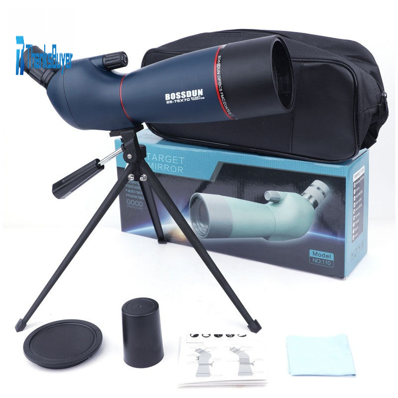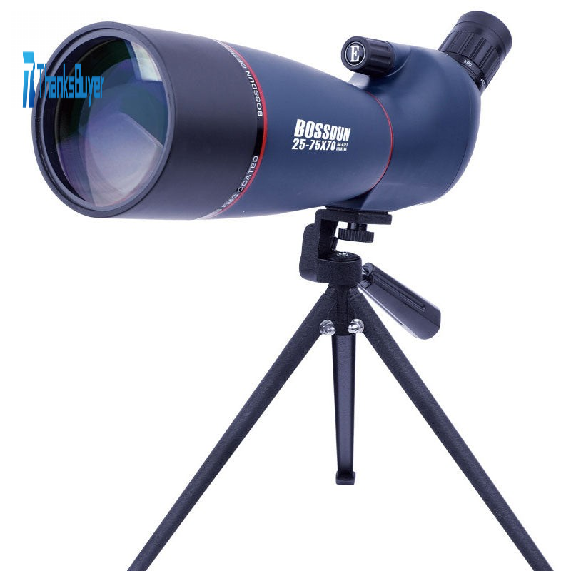 BOSSDUN 25-75x70 HD Spotting Scope BAK4 Zoom Monocular Blue with Tripod for Watching Wildlife Stars