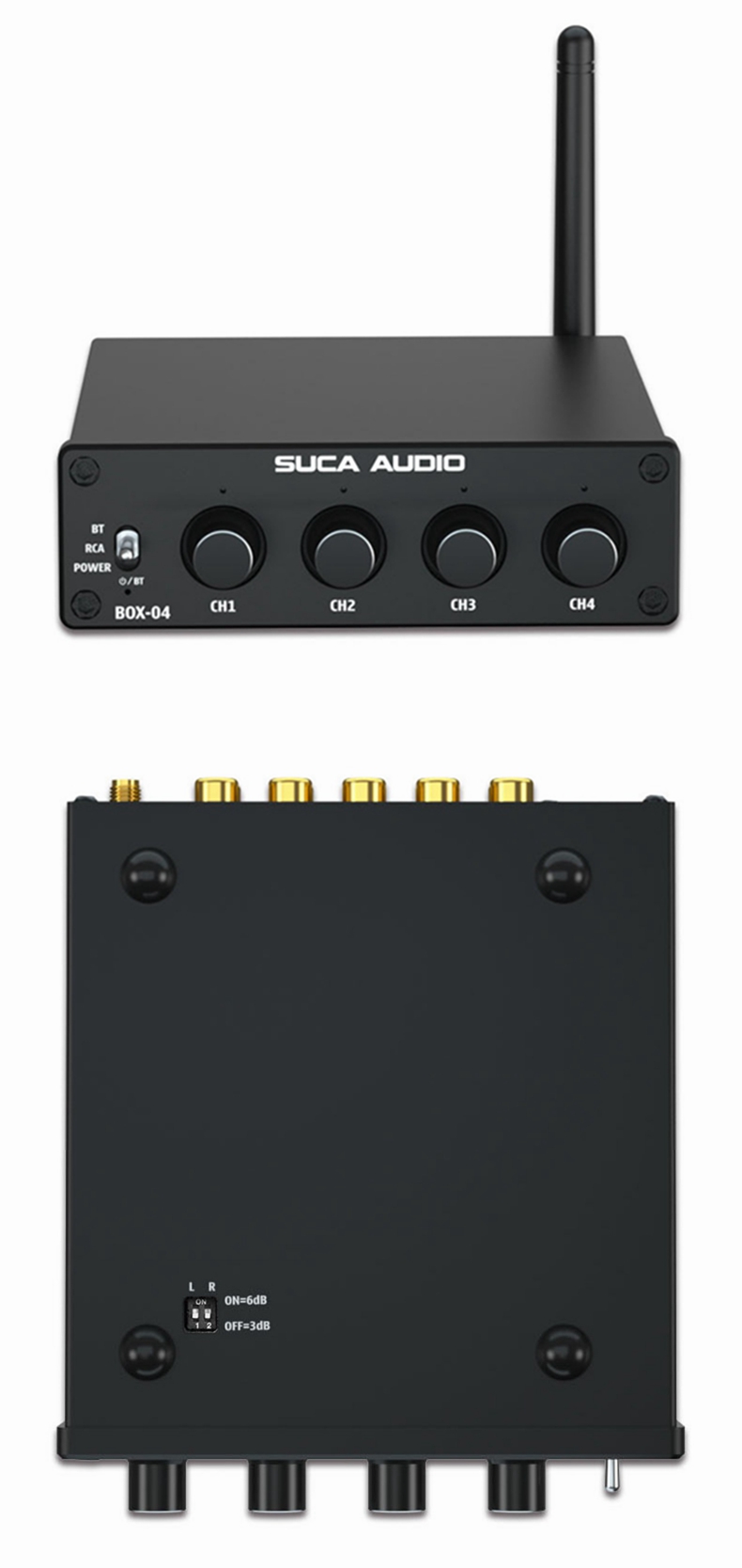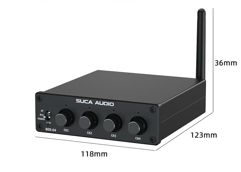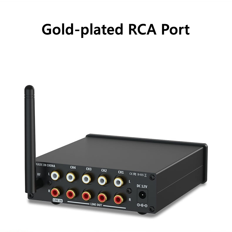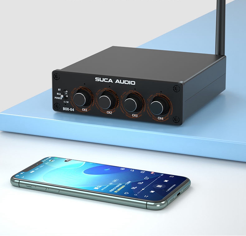 BOX-04 Audio Switcher Bluetooth 5.0 High Fidelity 1 In and 4 Out Lossless Audio Switcher with Gain Switch