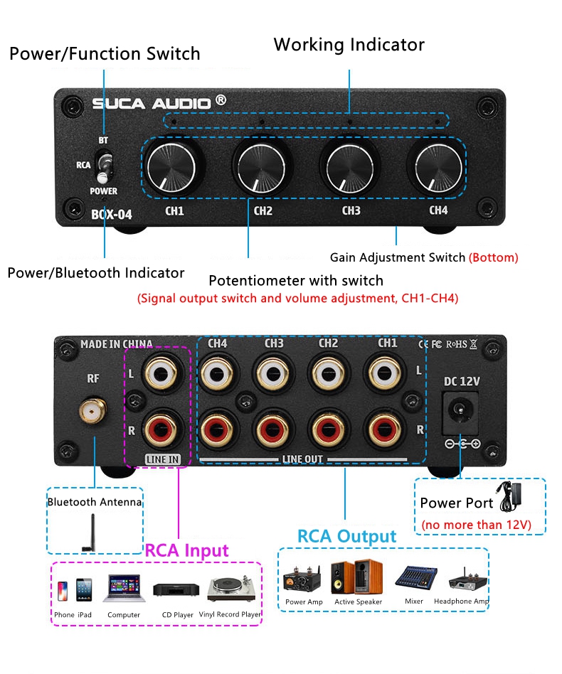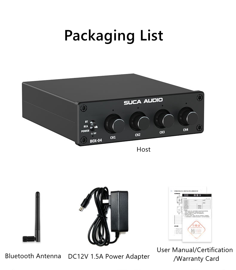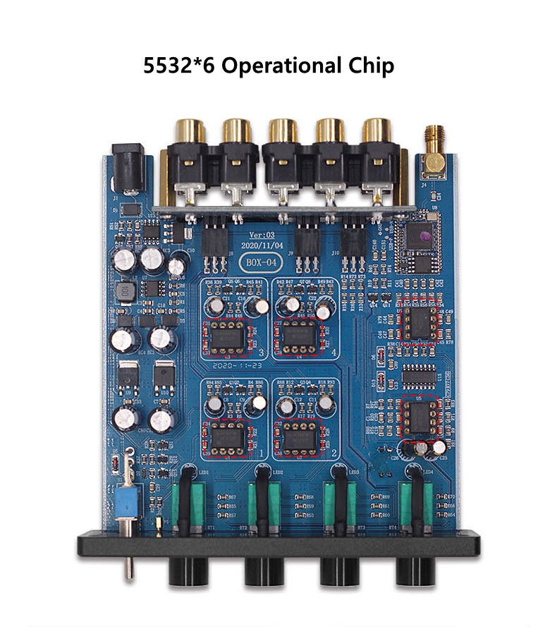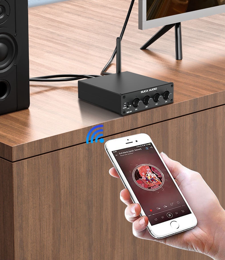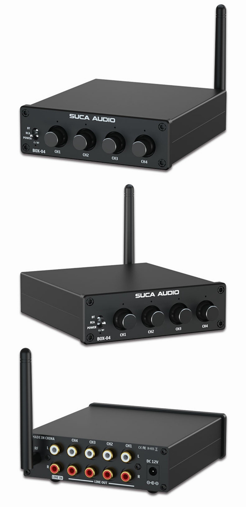 BOX-04 Audio Switcher Bluetooth 5.0 High Fidelity 1 In and 4 Out Lossless Audio Switcher with Gain Switch