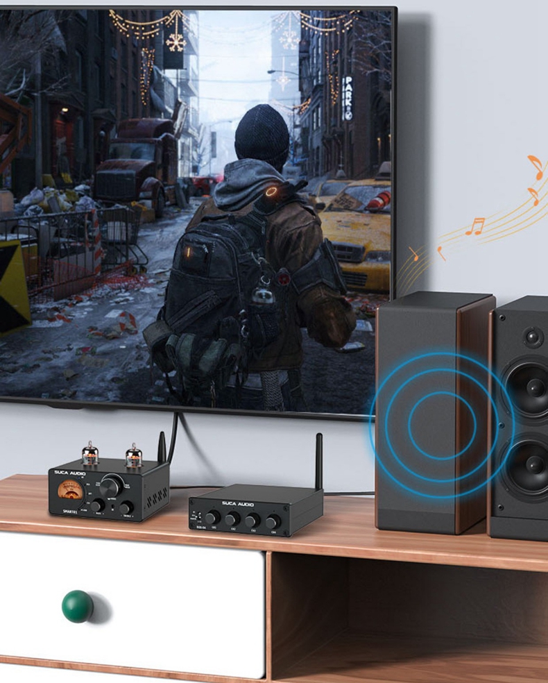 - Connect the signal source with the input port of the switch through an RCA line output, and connect the output end of the switch with the display through the RCA line to create a theater level sound effect.