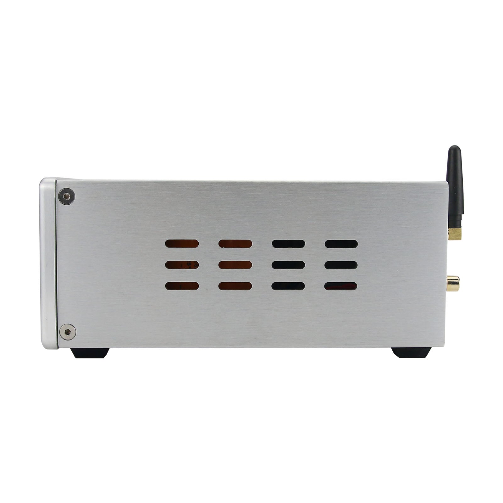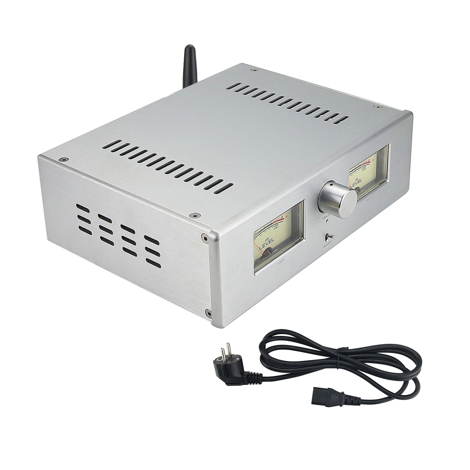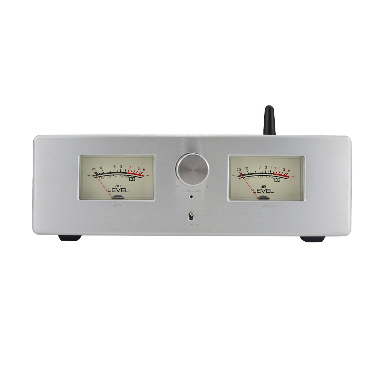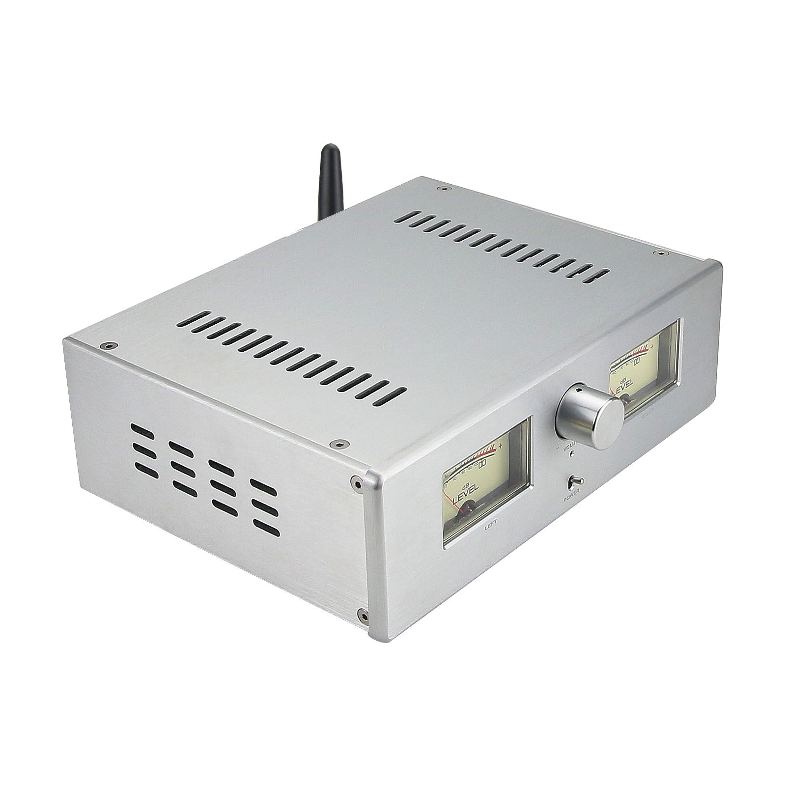 This machine is designed for listening to music on home computers, and it is easy to use with portable devices which with Bluetooth function. The casing of the whole machine is made of CNC all-aluminum alloy, and the retro warm-light dual meter adds a touch of atmosphere to music listening. The appearance of the whole machine is exquisite and compact, convenient for placing on the computer desktop.