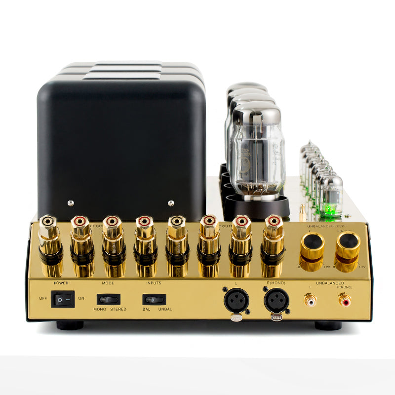 - Such fine material selection, winding, and special freezing treatment make the power of stereo single-sided up to 75W, and serial mono-channel up to 150W, which is equivalent to 800W of vacuum tube pre-amplifier-transistor power amplifier