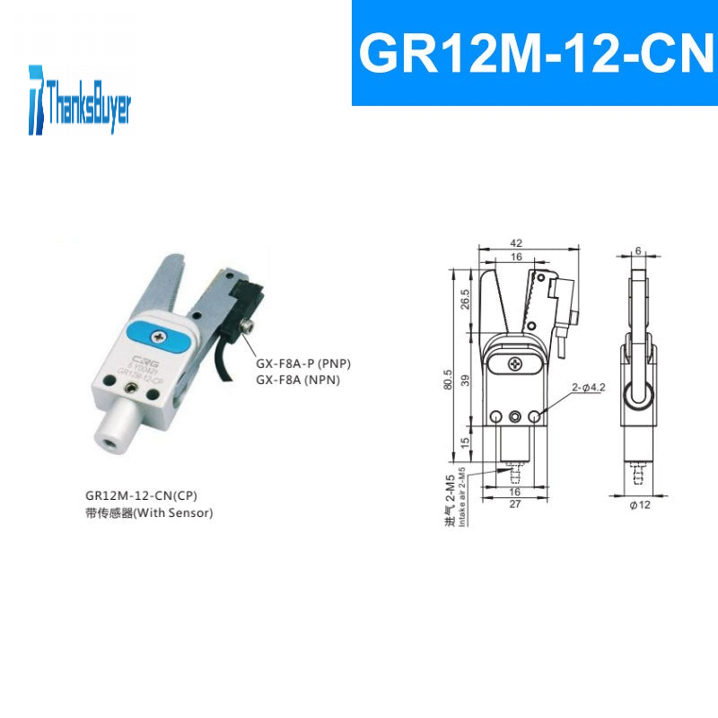 CRG GR12M-12-CN 28N Mechanical Arm Mini Sprue Gripper Pneumatic Clamp with NPN Sensor (Steel Jaw)
