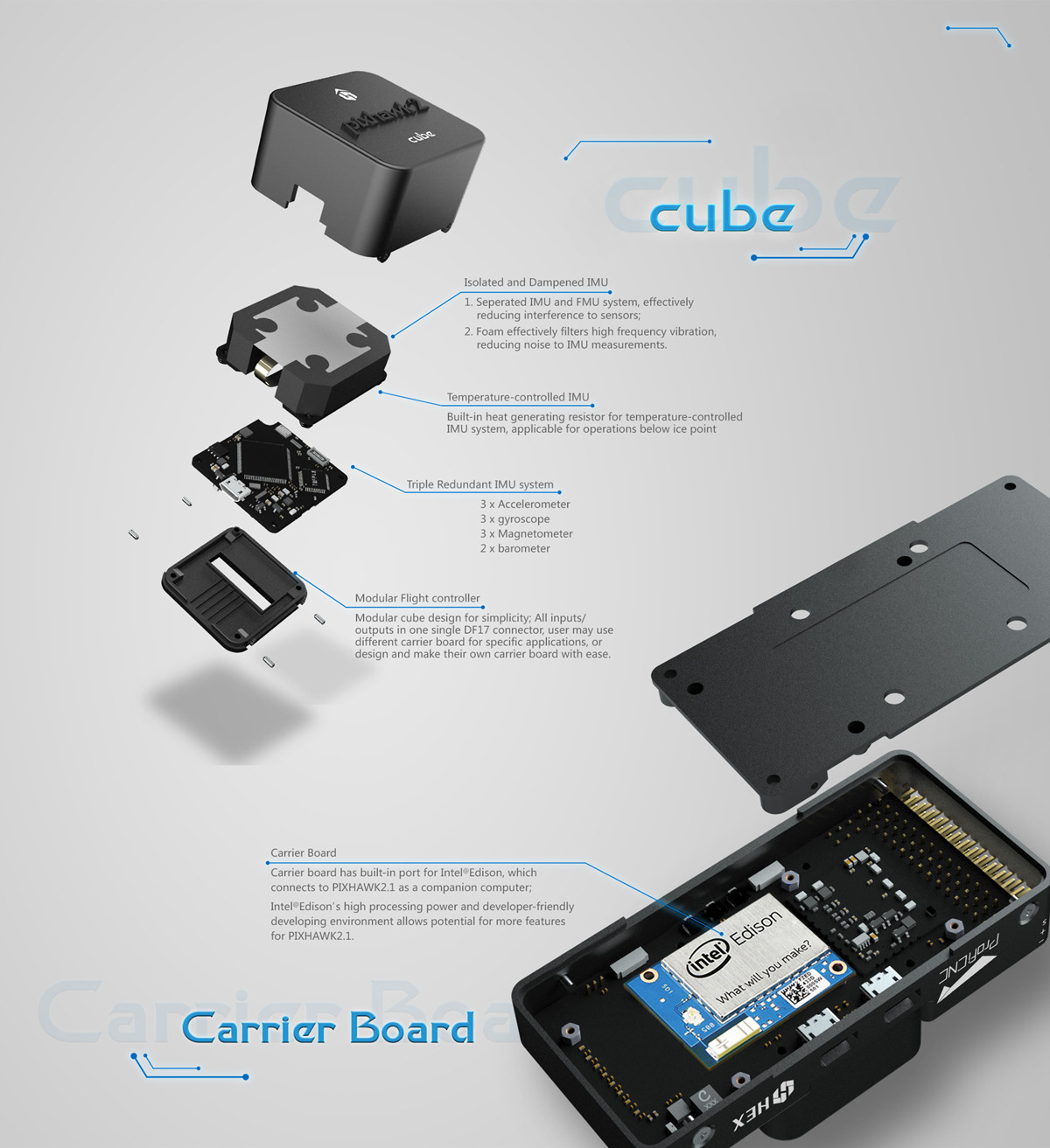 - Software: Supports for PX4 & Ardupilot Open Source Flight Control Software
