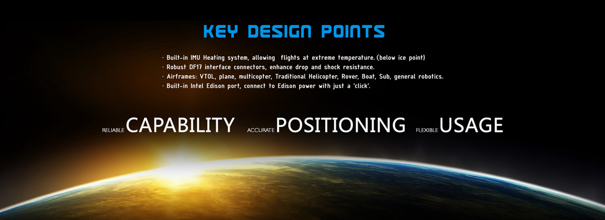 - Built-in IMU heating system, allowing flights at extreme temperature (below ice point)