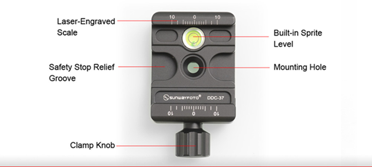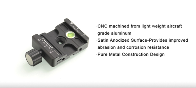 DDC-37 Screw-Knob Clamp, CNC cutting machine from light weight aircraft-grade aluminum, stain anodized surface finish for better abrasion and corrosion resistant. For all Arca-Swiss style plates.