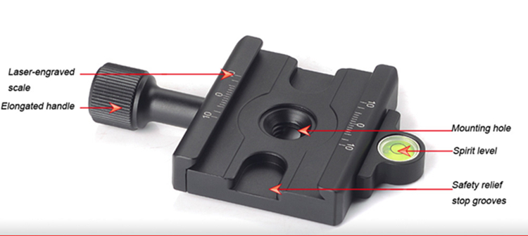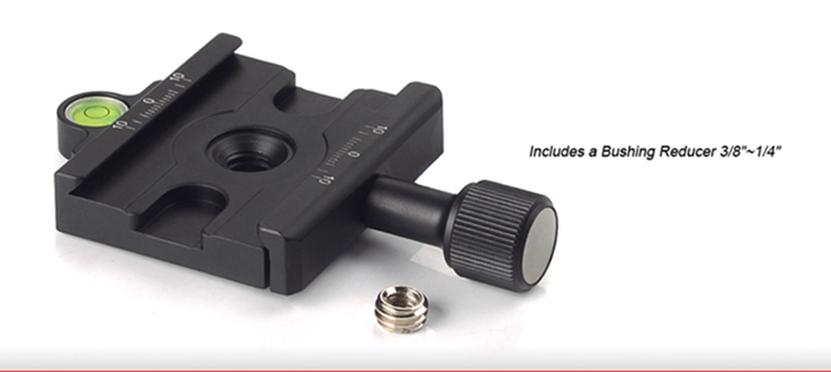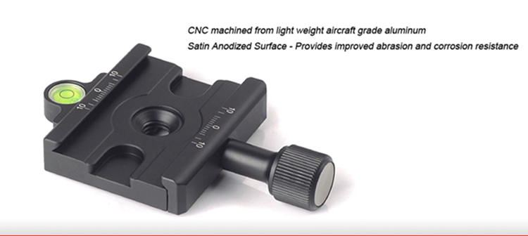 DDC-60L Screw-Knob Clamp, CNC cutting machine from light weight aircraft-grade aluminum, stain anodized surface finish for better abrasion and corrosion resistant. For all Arca-Swiss style plates.