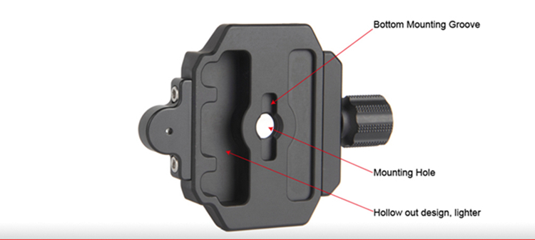 DDC-60X Screw-Knob Clamp, CNC cutting machine from light weight aircraft-grade aluminum, stain anodized surface finish for better abrasion and corrosion resistant. For all Arca-Swiss style plates.