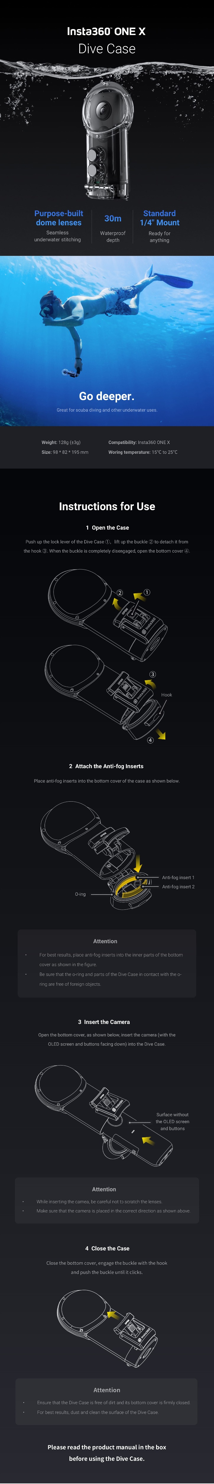 Dive Case For Insta360 ONE X Camera Underwater Protective Housing 30M Waterproof Shell Case