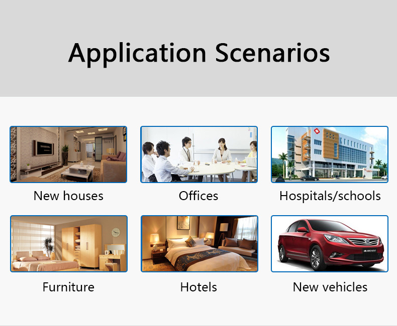 - Application scenarios: new houses, offices, hospitals, schools, furniture, hotels, new vehicles, etc.