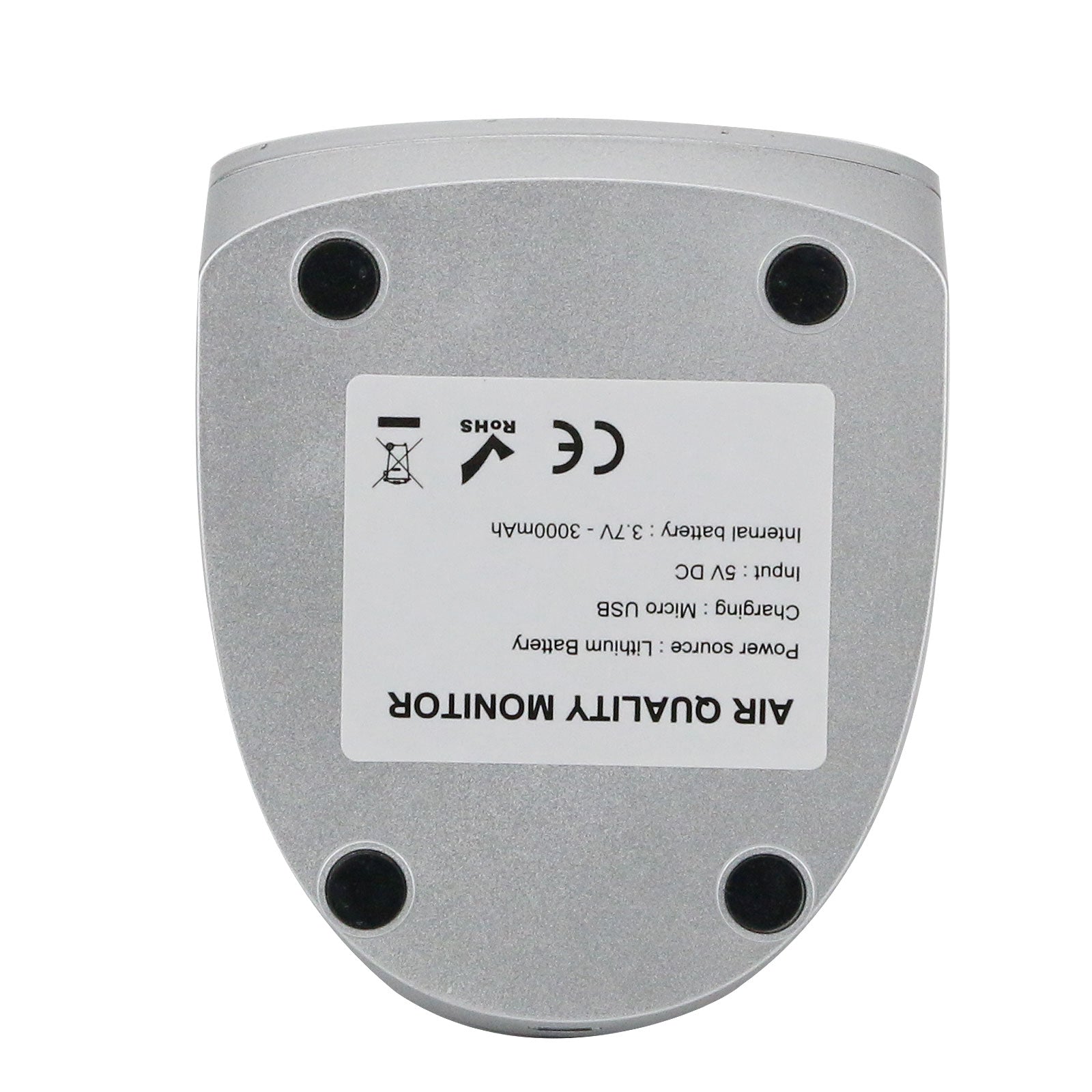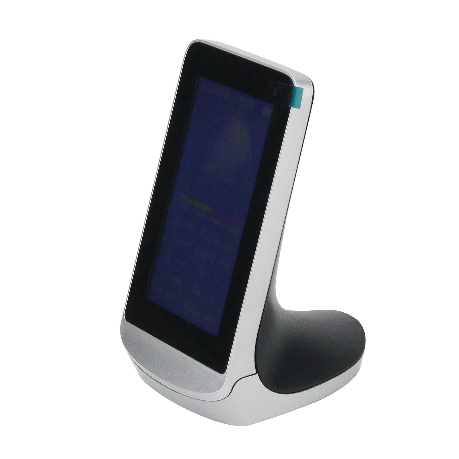 This product is a multifunctional air quality detector that detects Carbon dioxide CO2, Formaldehyde (HCHO), Total Volatile Organic Compounds (TVOC), Particulate Matter <2.5 micron-sized particles (PM2.5/1.0/10), Temperature, and Humidity with clock and record function. As a scientific air quality detection device, it combines multiple air sensors with a built-in fan to allow real-time monitoring of CO2 (Carbon dioxide ), formaldehyde (HCHO), total volatile organic compounds (TVOC), PM2.5/1.0/10, temperature, and humidity on its digital LCD display.