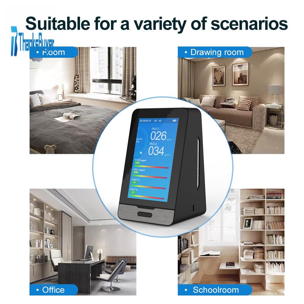 - This detector is suitable for indoor and outdoor air quality, muti-envornmental air quality monitoring for furniture, decorations, cars, and so on.
