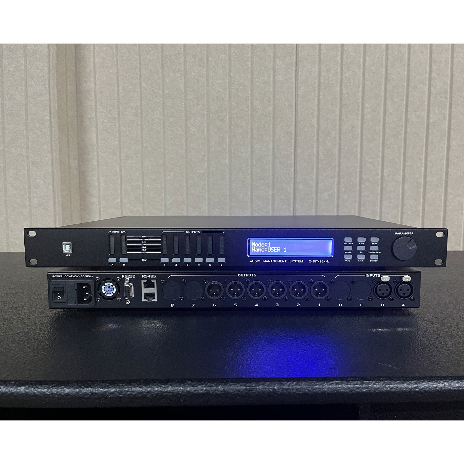 - Display: 2X24LCD blue backlit display settings and 8-segment LED display input/output level display