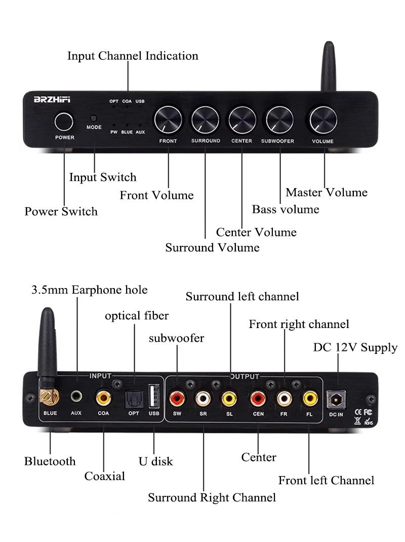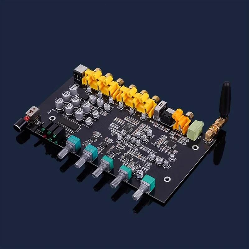 - A digital audio decoder/player developed specifically for building a 5.1 channel surround sound system for HIF audio systems and home theater systems. The design of the preamplifier based on the large-scale integrated circuit QS7785PF is a single-chip surround sound processing large-scale integrated circuit produced by the Audio Technology Laboratory Surround patented technology. QS7785PF is currently recognized in the industry as the virtual Dolby surround chip with the closest processing effect to natural sound! Supports various lossless music playback options such as USB WAV, DTS, AC3, APE, FLAC, and supports multiple input channels such as fiber optic, coaxial, AUX, and Bluetooth 5.0.