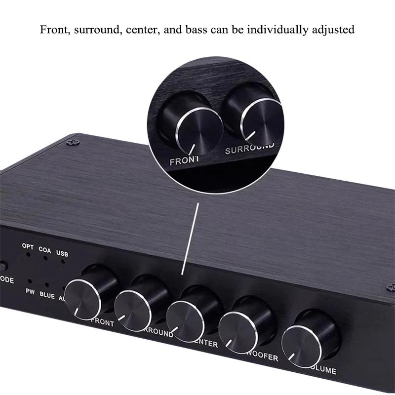 - This device can convert dual channel regular stereo signals or stereo music signals output by Dolby Directional Logic DVD (AC3 encoding) into 5.1 channel outputs such as front left FL, front right FR, center C, surround left SL, surround right SR, and subwoofer SW, and can switch between multiple modes and different audio sources. Multi scenario applicability, popularizing the skills of professional sound engineers to every user, providing precise tuning of multi-level balance and reverberation, meeting your picky auditory needs like a song every year.
