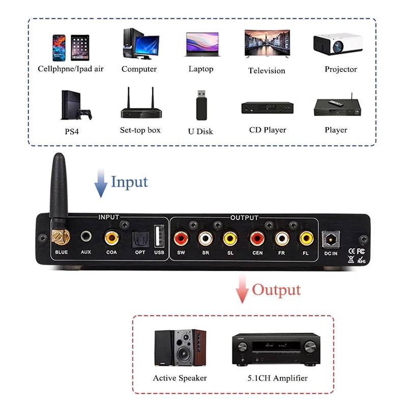 DT03 HiFi Audio Player Bluetooth/USB/Optical Fiber/Coaxial/AUX Input to 5.1 Channel Preamplifier Audio Decoder