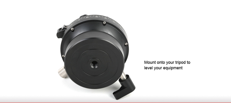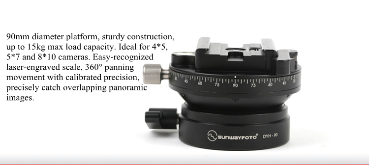 DYH-90A Leveling Base with a build-in lever-release clamp, CNC cutting machine from light weight aircraft-grade aluminum, stain anodized surface finish for better abrasion and corrosion resistant. Come with 90mm diameter platform, sturdy construction, up to 15kg max load capacity and super smooth fluid of adjust movement to +/-16 degree. It is ideal for medium/large format camera.