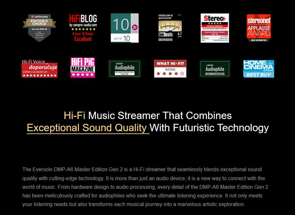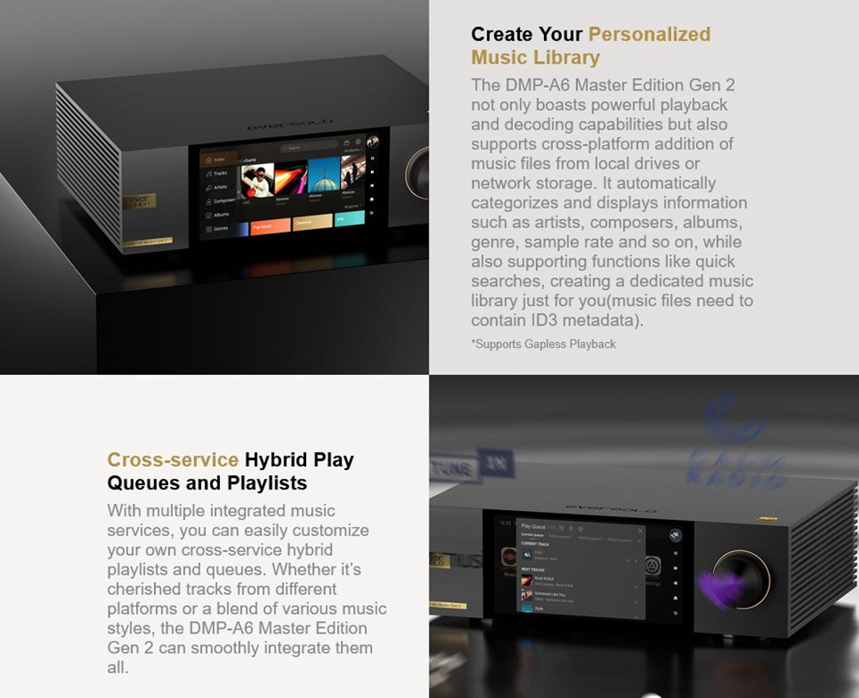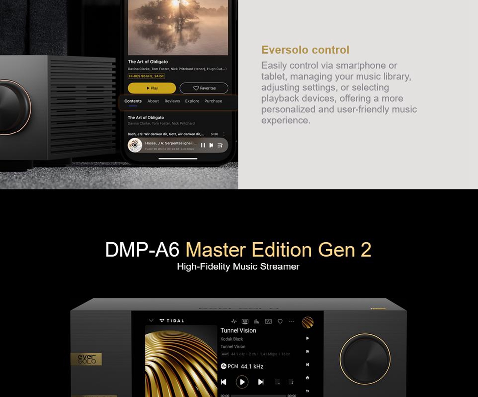 EVERSOLO DMP-A6 Master Edition Gen2 HiFi Audio Player Ultra-low Jitter Clock DAC Streaming Media with RGB Effects Knob