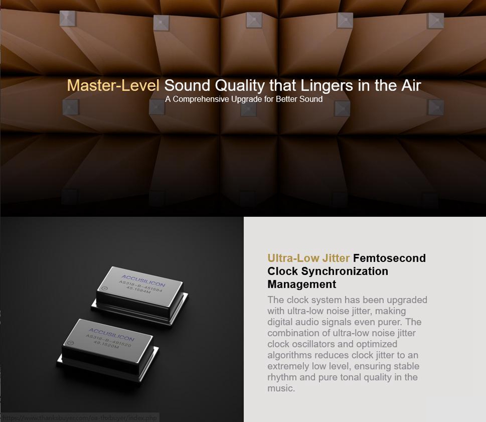 - USB audio output: supports up to stereo DSD512 native, PCM 768kHz 32Bit, MQA format