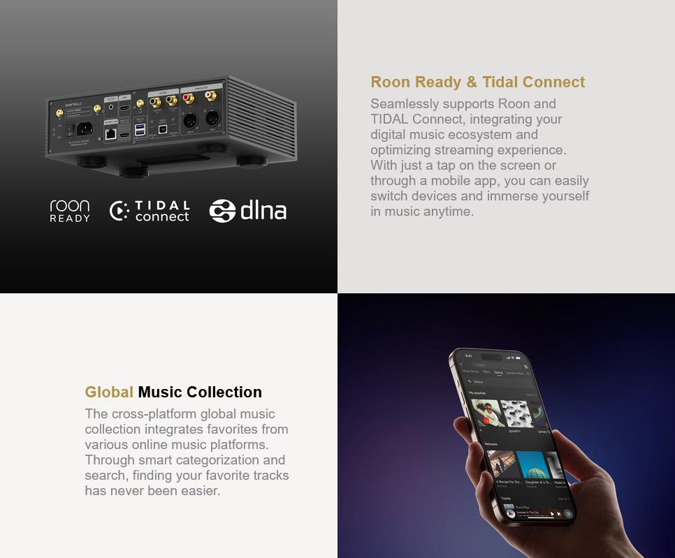 - Streaming: for Roon Ready, DLNA, TIDAL Connect...