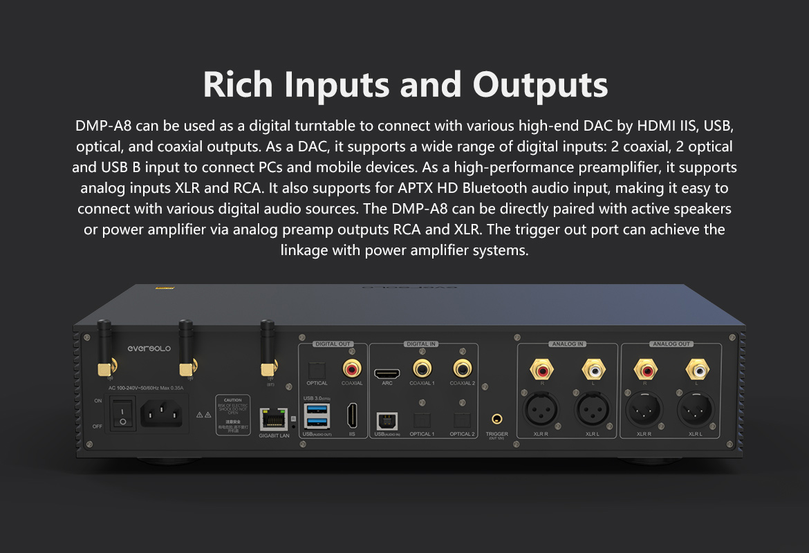 Eversolo DMP-A8 4G+64G Music Streamer DAC QCC5125 Bluetooth 5.0 Receiver for DSD512 PCM 768KHz 32Bit