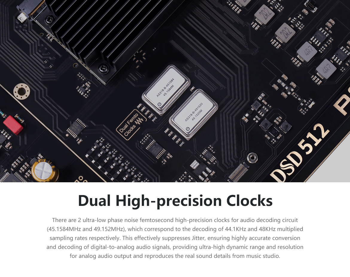 - USB Audio Output: Support up to stereo DSD512 and PCM 768KHz 32Bit