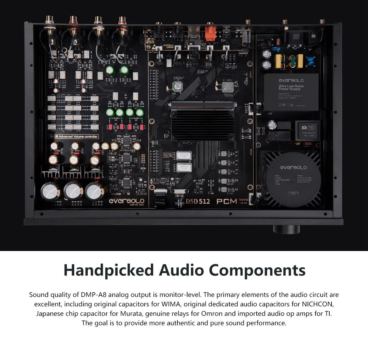 - Power Supply: High-quality, low-noise linear + digital dual power supply