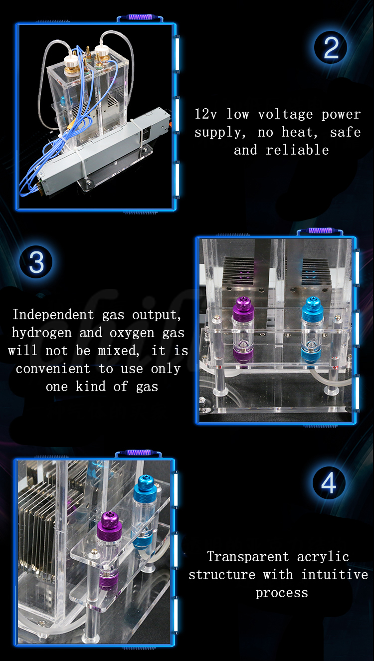 At the request of the majority of science and technology enthusiasts, we designed this hydrogen-oxygen separation type water ionizer to achieve independent collection of hydrogen and oxygen, greatly improving safety and increasing practicality. Buyers who need to use oxygen or hydrogen independently have a low-cost gas manufacturing device.