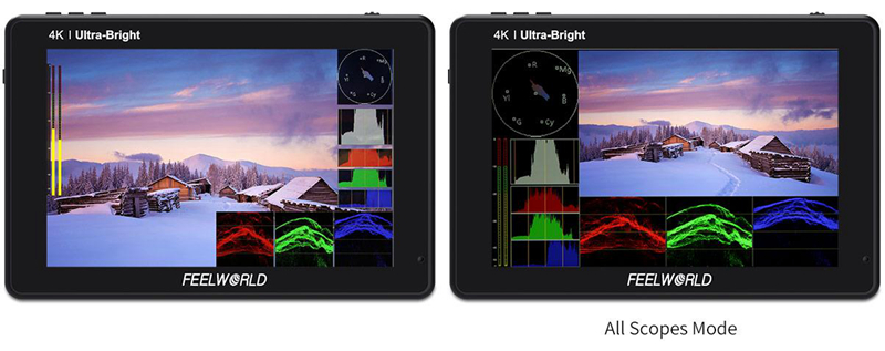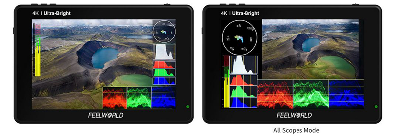 FEELWORLD monitor support ITU standards and HD video Rec.709 standard consistent color space, advanced image processing technology, so that the image clearly presented, the color is extremely natural, to ensure accurate color reproduction, to reproduce the physical nature of shooting, enabling users to accurately evaluate the quality of various input video signals.