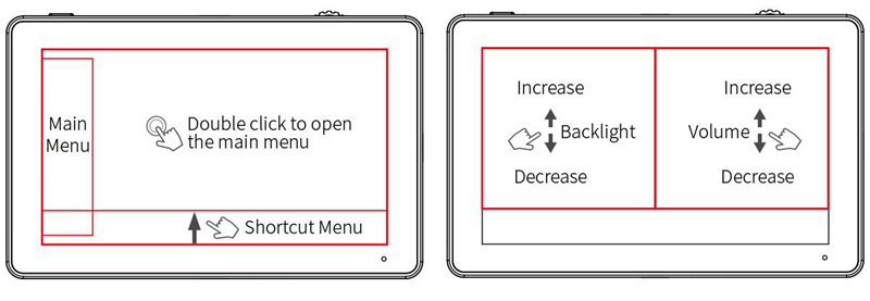 3. On the left side of the screen (1/2 split screen), you can directly adjust the brightness of the screen backlight; on the right side of the screen (1/2 split screen), you can directly adjust the volume.