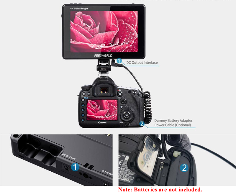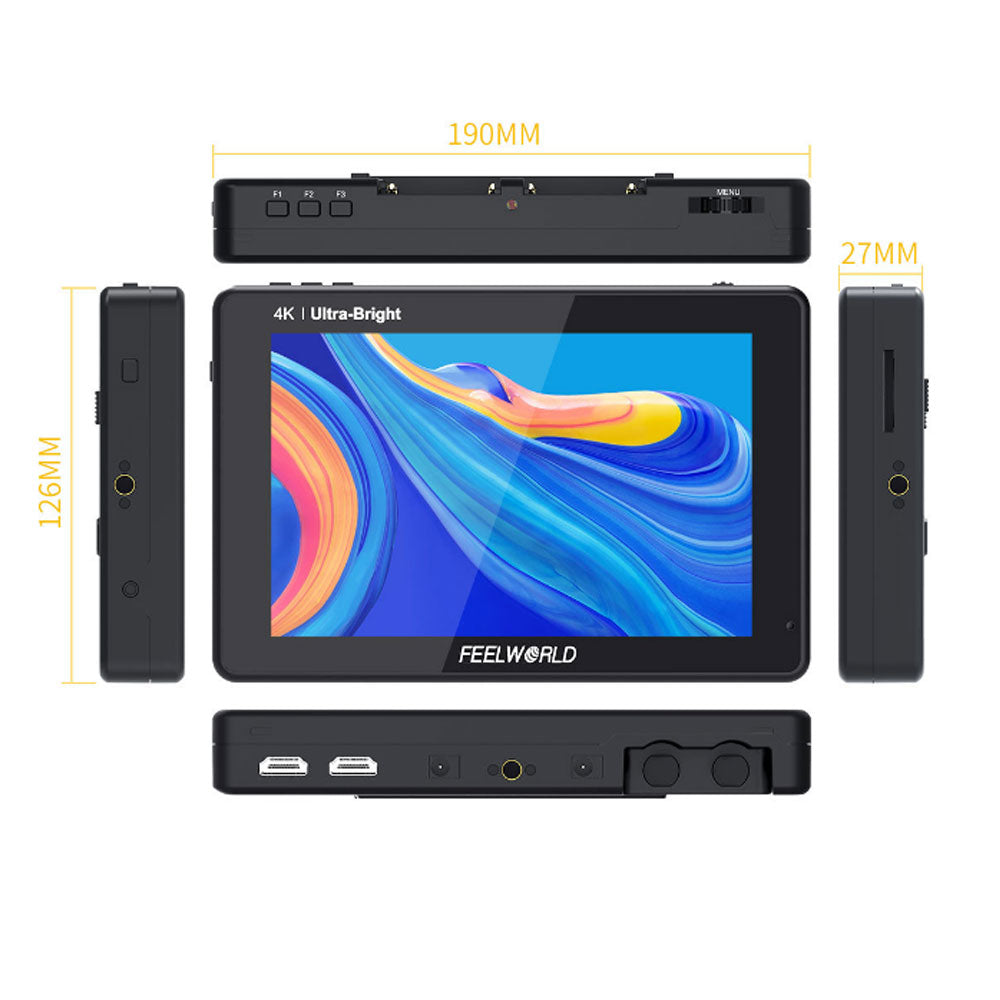 The FEELWORLD LUT7 is an ideal camera-top monitor for DSLR and mirrorless camera shooters. Because the LUT7 provides auxiliary power out; allowing shooters to power their cameras. With a battery adapter cable (Optional), the LUT7 extends camera run-time, while providing a more usable display.