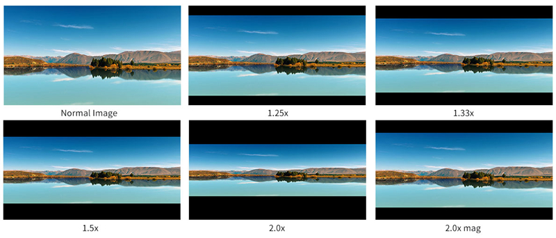 * Anamorphic Mode (1.25x, 1.33x, 1.5x, 2.0x, 2.0x mag)