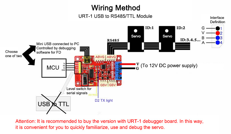 FEETECH SM8512BL 85KG 360-degree Bus Servo RS485 Metal Dual Shaft Servo w/ URT-1 Debugger Board